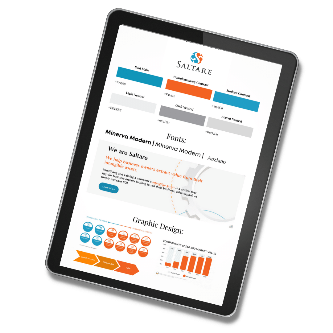 They were defeated by the process with a less-than-responsive web designer and were uninspired by their current website and brand. They were also highly aware of the biggest challenge to their brand - the actual what of their business. Defining "intangible assets”, let alone getting the right audience to care about intangible assets is no simple task. In order to build their new brand, we needed to begin by going back to the drawing board to truly understand what they offered, who they sought to serve, why they were in the business in the first place, and how to position themselves as leaders in this market.